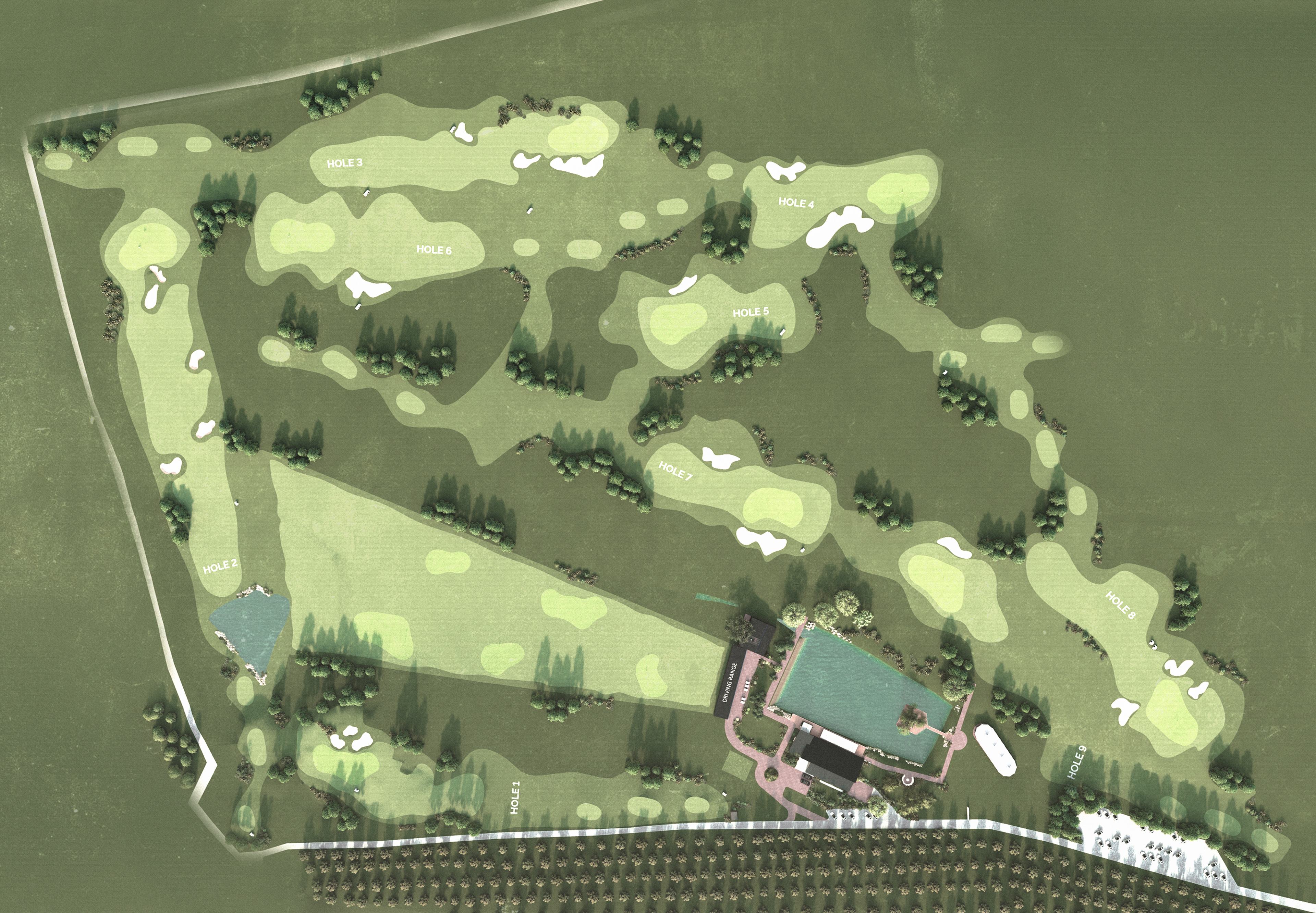 Rather than imposing a rigid geometry, the project proposes an organic integration into the landscape, where topography and vegetation define the course. This approach creates a varied playing experience in which the natural environment becomes an active participant.