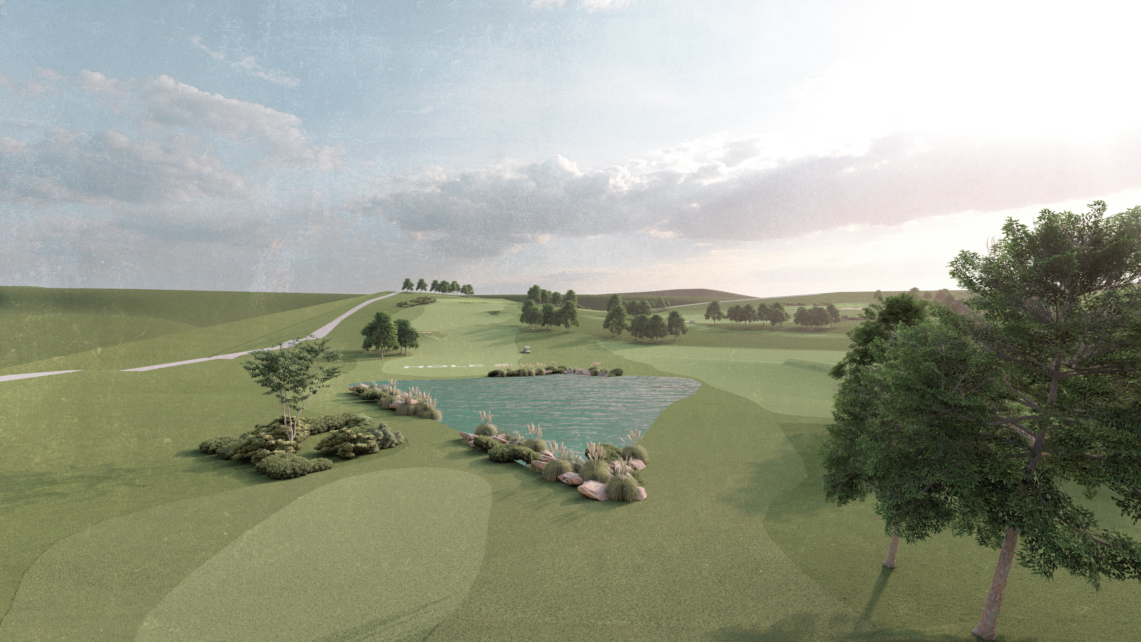 Dezvoltarea complexului a început cu realizarea lacului artificial, prin excavarea și modelarea terenului. Ulterior, au fost pregătite suprafețele pentru zona de driving range.