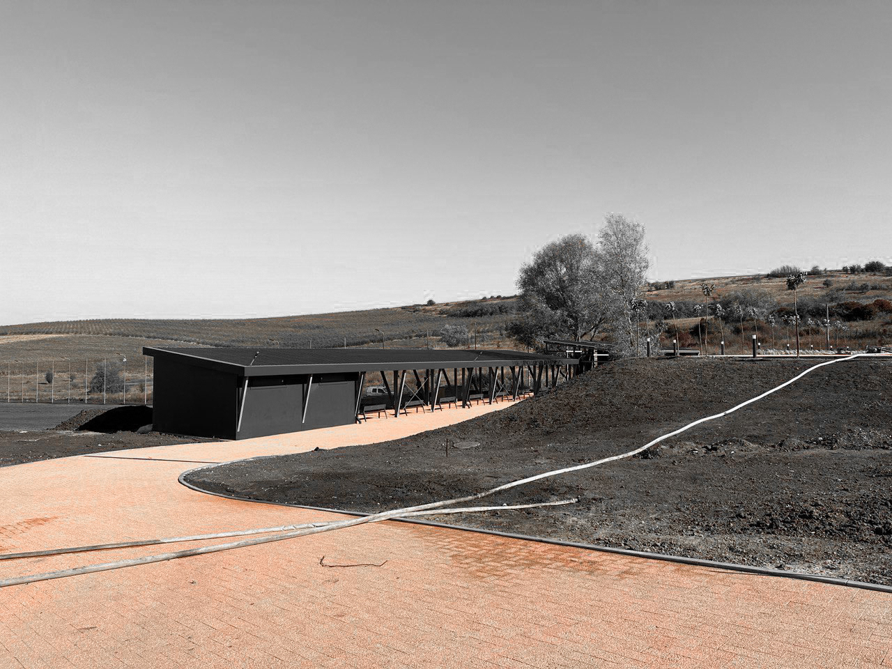 The development of the complex began with the creation of the artificial lake, through excavation and terrain modeling. Subsequently, the ground was prepared for the driving range area.