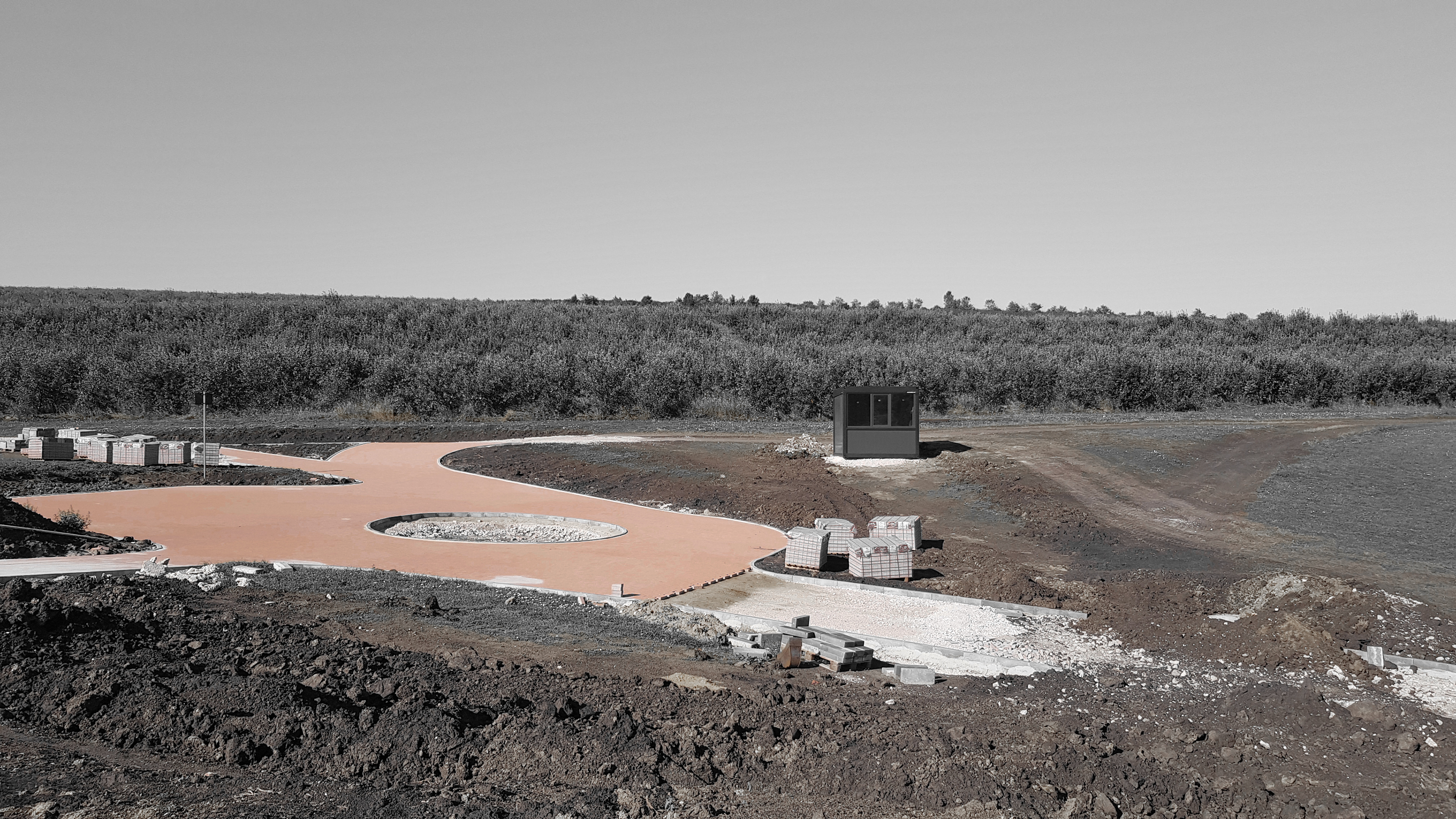 Prima etapă construită a inclus driving range-ul și traseul pietonal realizat din pavaj de cărămidă roșie, care funcționează ca element de orientare și identitate. Etapele următoare continuă dezvoltarea ansamblului.