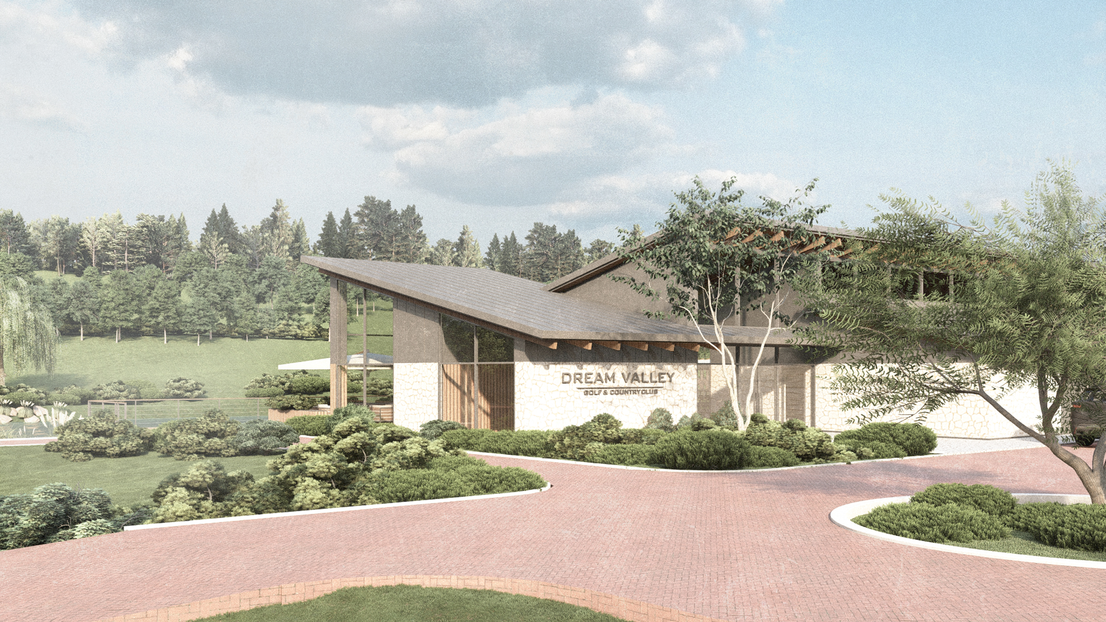 Dream Valley Golf & Country Club este un ansamblu de agrement dezvoltat etapizat, amplasat într-un cadru natural caracterizat de relief colinar și deschideri ample către peisaj. Planul general organizează compoziția în jurul unui lac artificial, care devine elementul central atât funcțional, cât și vizual. În jurul acestuia sunt dispuse principalele componente ale complexului: restaurantul cu terasă, zona de antrenament „driving range”, traseul de 9 găuri, spațiul de evenimente definit de un cort de mari dimensiuni, precum și zonele de relaxare și traseele pietonale care structurează relația dintre apă și peisaj.