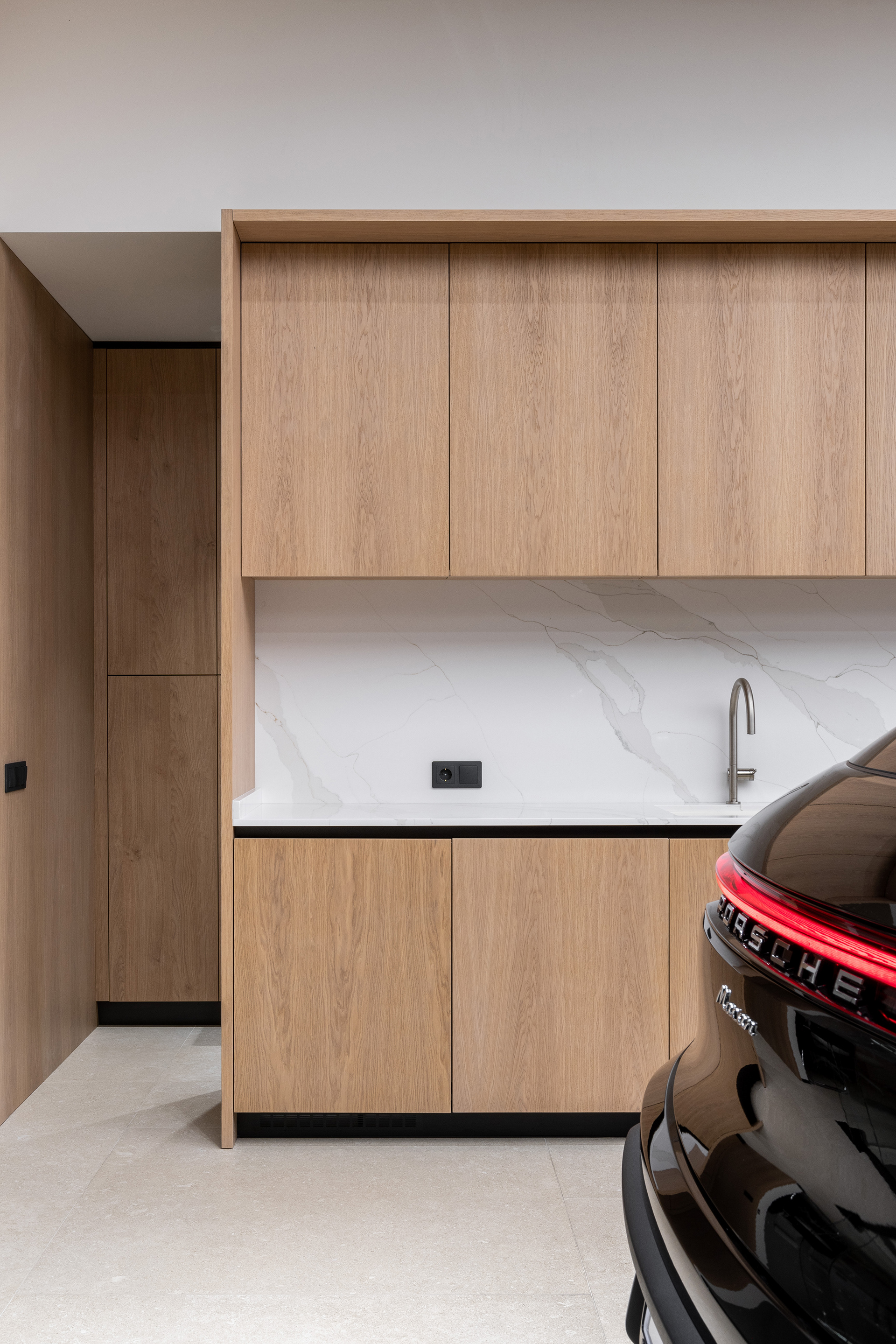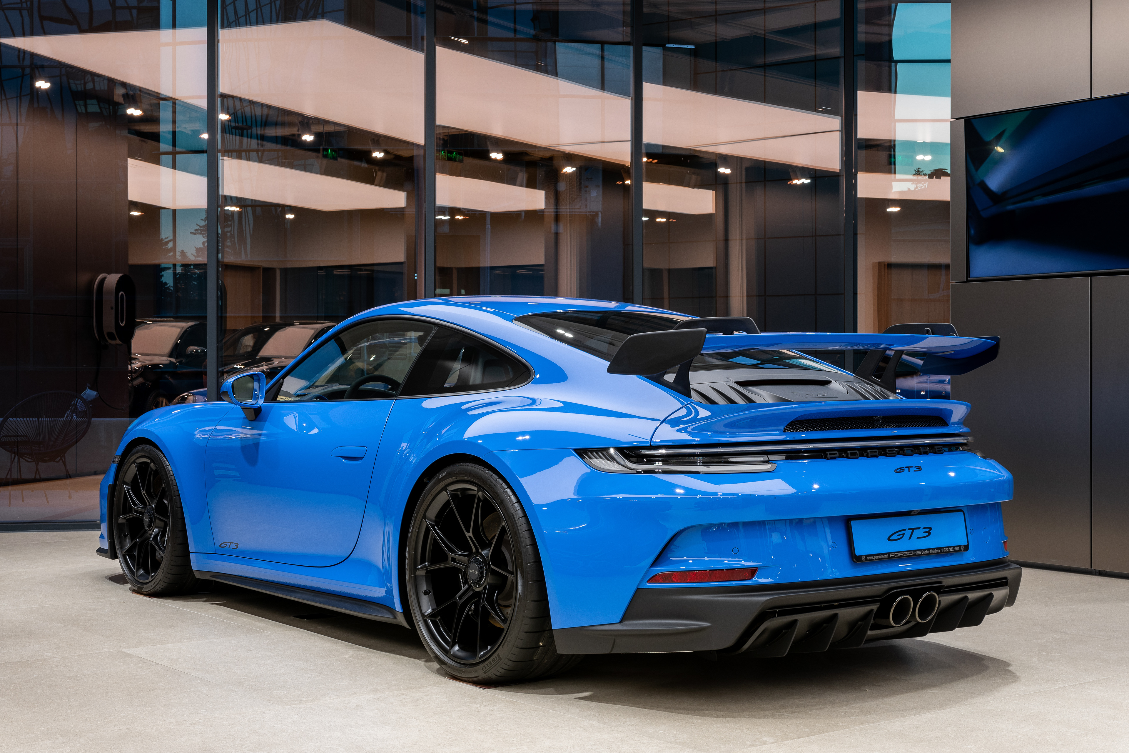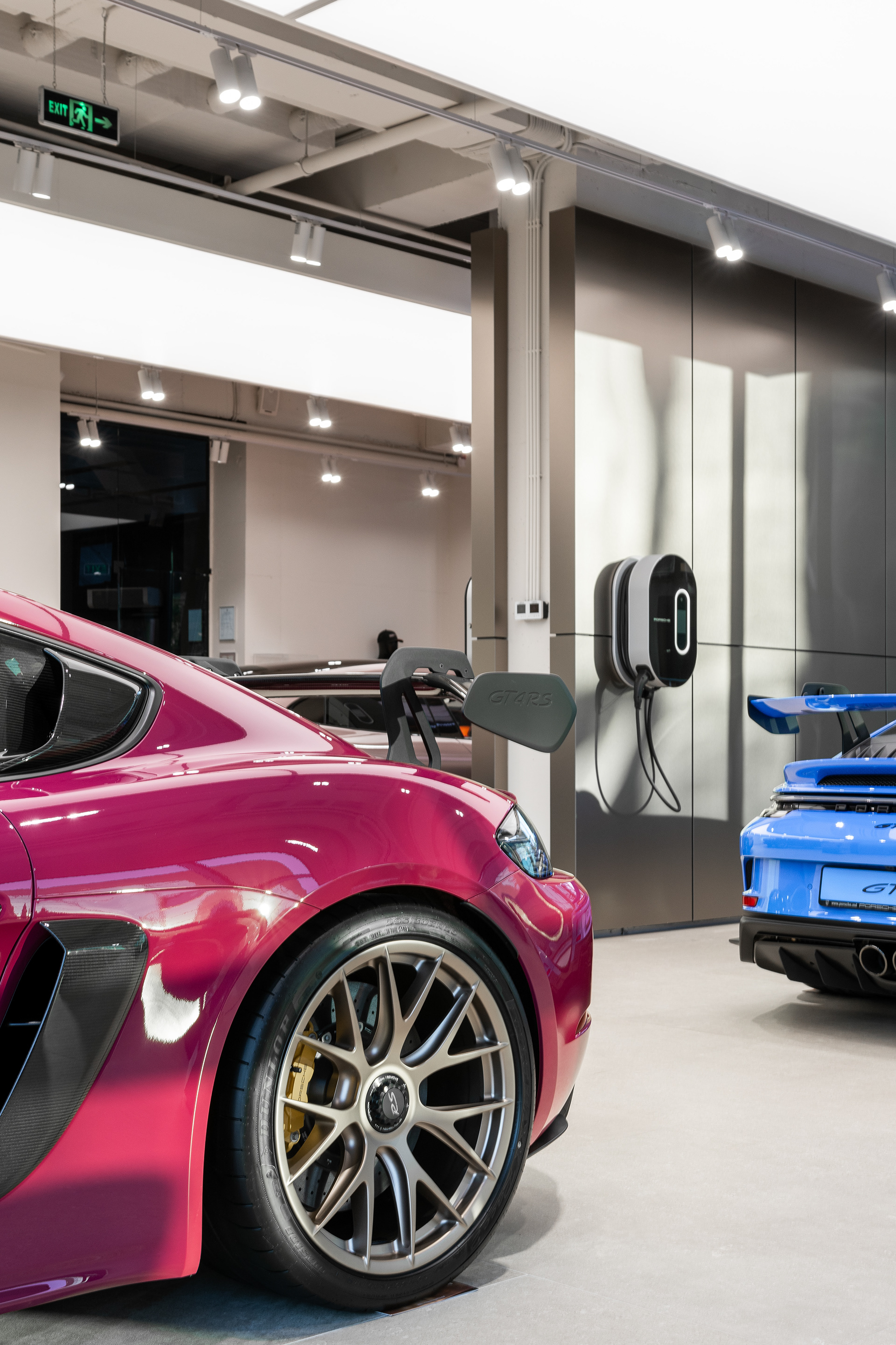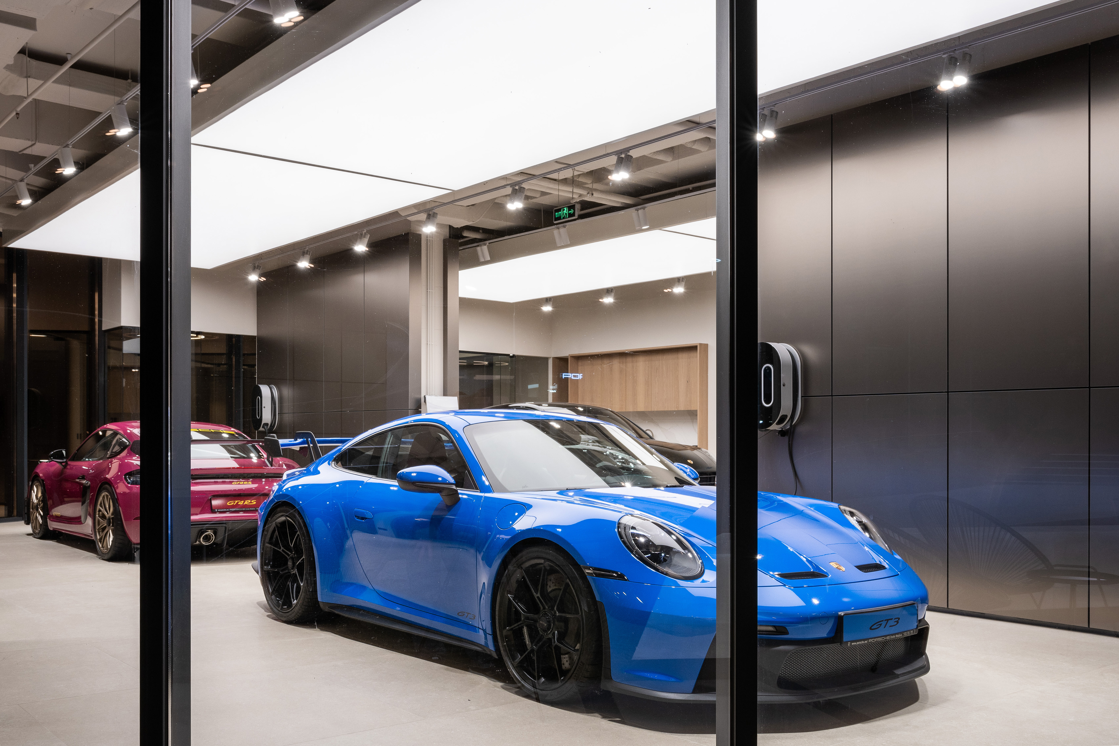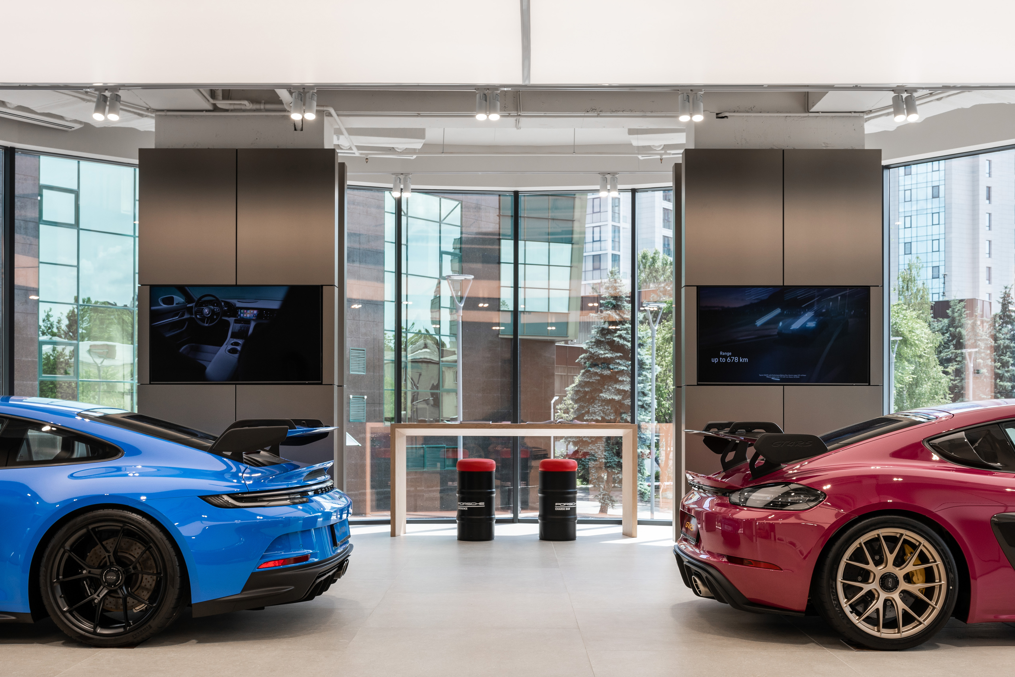 The photoshoot featured on our website illustrates how the interior does not take center stage—instead, it serves as a sophisticated backdrop that enhances the presence of the Porsche sports models, creating the perfect setting for their presentation.
