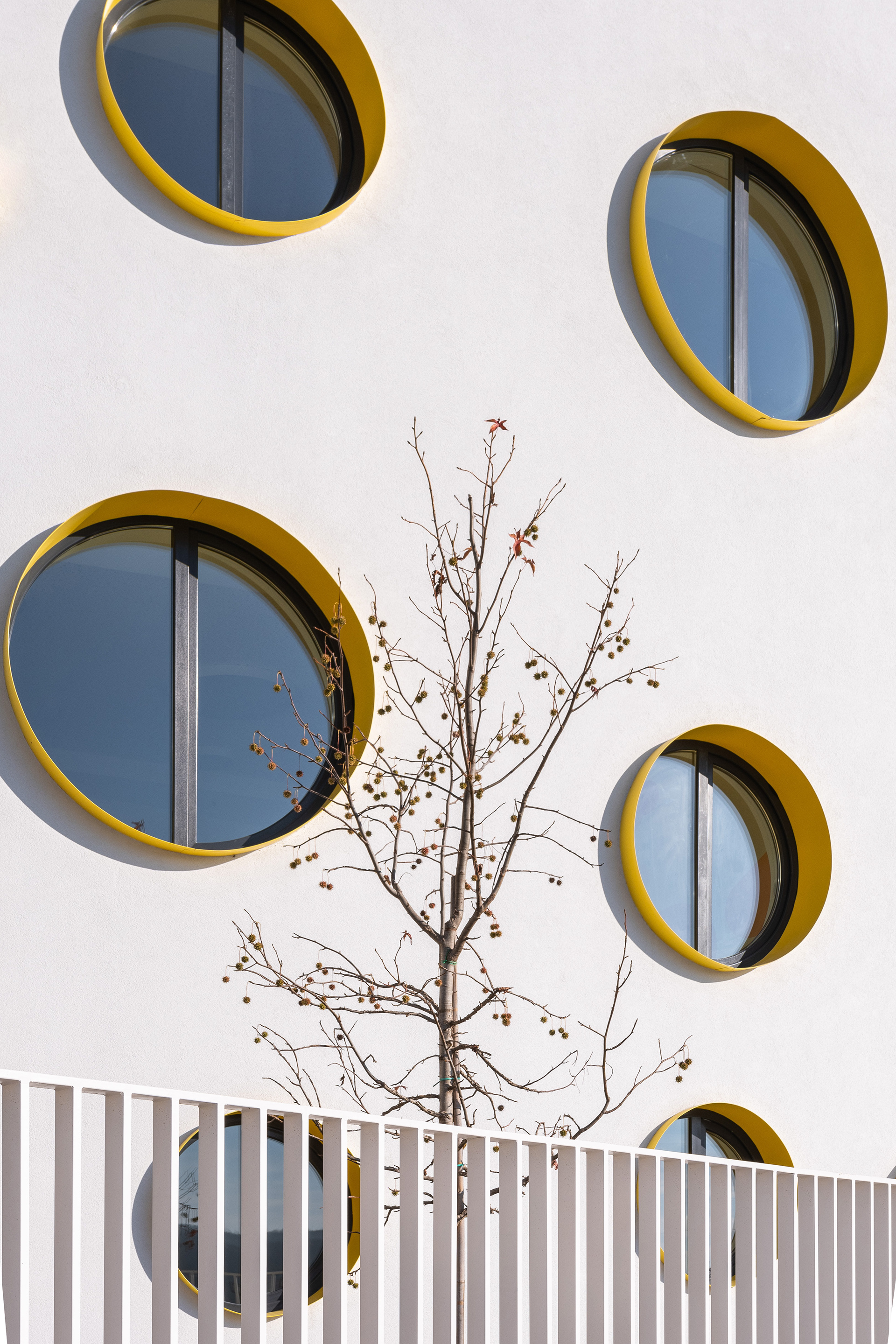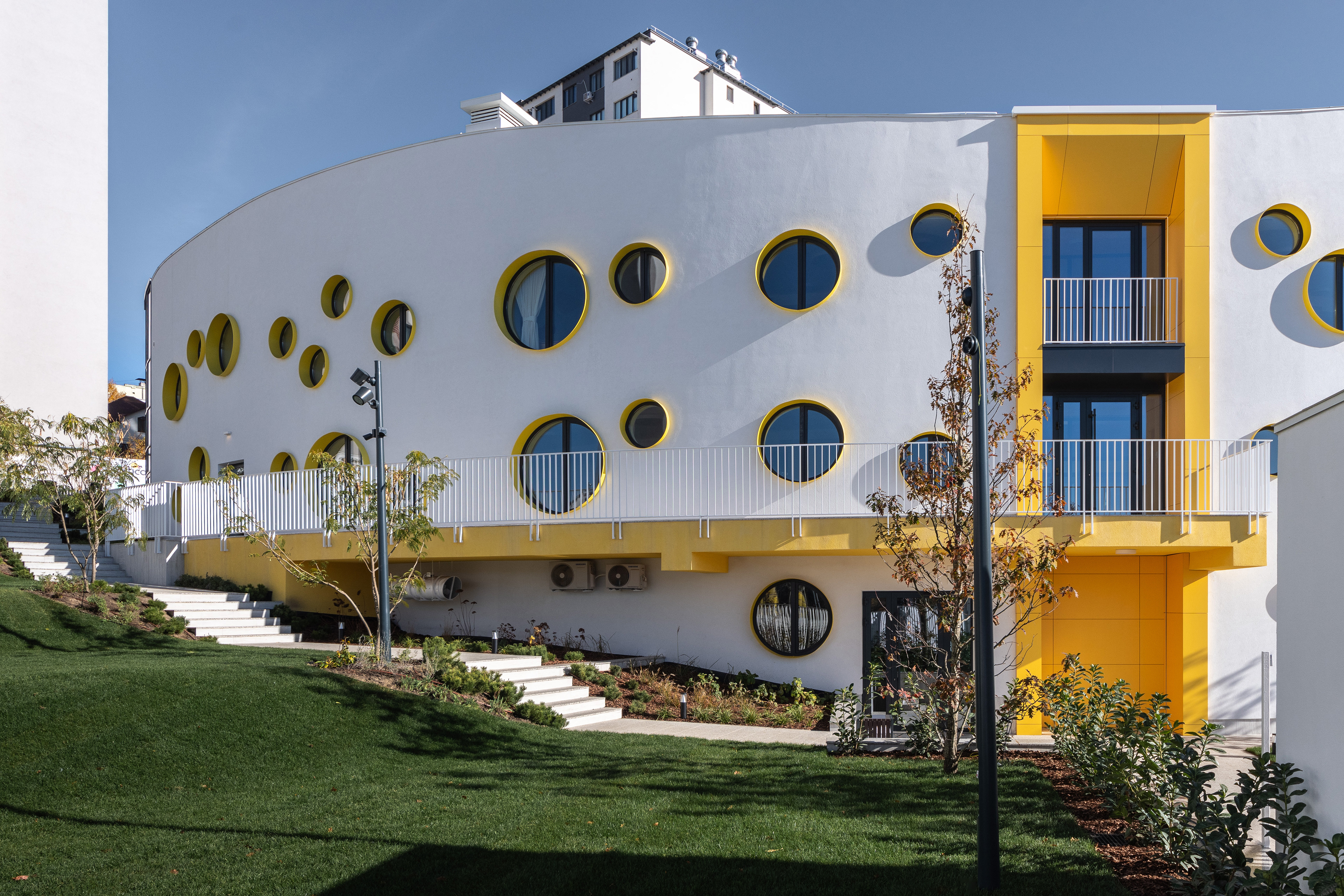 The inner courtyard is configured as an atrium, functioning as an open-air theater, a socializing space, and a venue for educational and artistic activities. The northern section of the site has been transformed into a park exclusively for children, providing a green relaxation area.