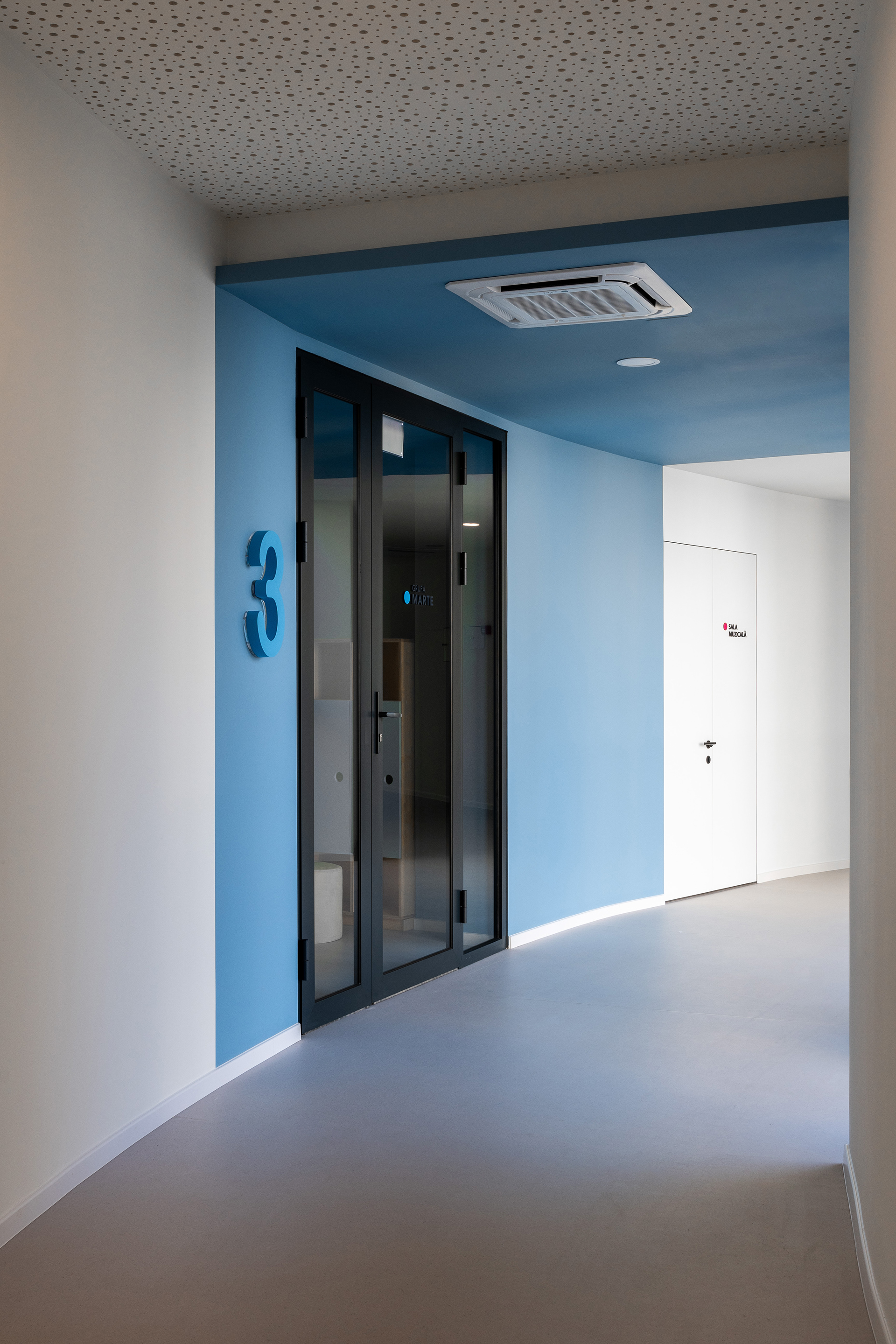 Sala festivă este atent împărțit în trei zone distincte: o sală de dans, o sală de muzică și o încăpere mare și luminoasă, cu o scenă semirotundă. Aceasta oferă un spațiu ideal pentru copii să învețe actorie, să performeze, să cânte și să își prezinte talentele părinților. Combinația de lemn, panouri acustice moi, oglinzi și elemente de design atent plasate creează un mediu armonios și funcțional.